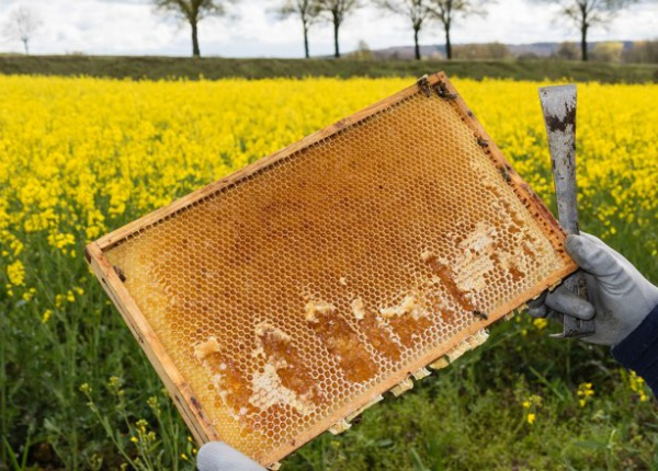 Nun wächst das Bienenvolk stark an. Die Putzbienen bereiten die Brutzellen vor. Die Bienen verlassen das erste Mal ihr Zuhause zum sogenannten Reinigungsflug. Sobald die Natur wieder Pollen bereit hält, beginnt der Brutbetrieb und aus den Eiern entstehen Sommerbienen. Nun wird fleißig gesammelt und im Mai wird bereits die erste Frühtracht geerntet.